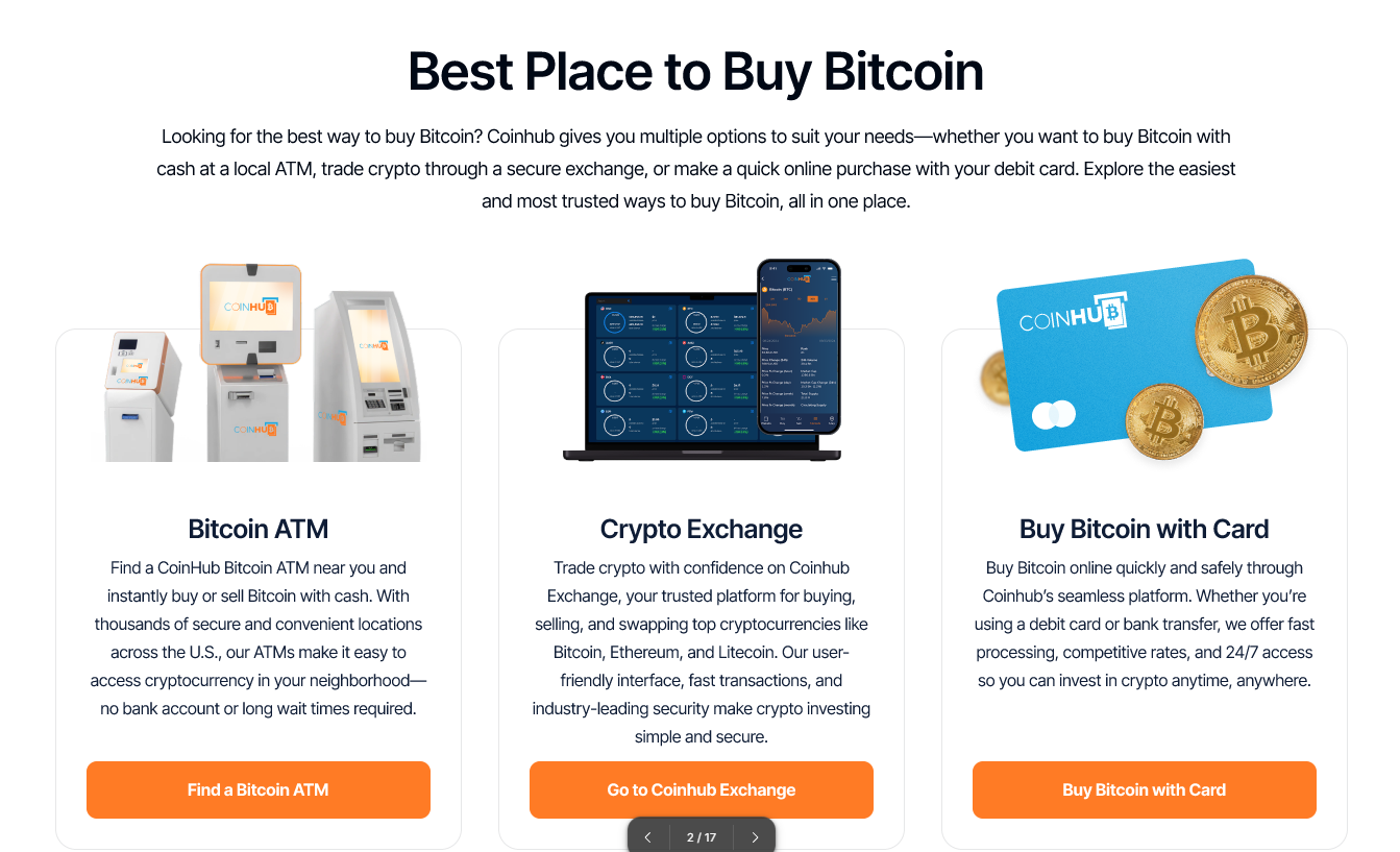 Coinhub offers the easiest way to buy {{Bitcoin | Crypto | btc}} locally or online. We have {{Bitcoin | Crypto | btc}} Machines conveniently placed throughout the country in major cities!