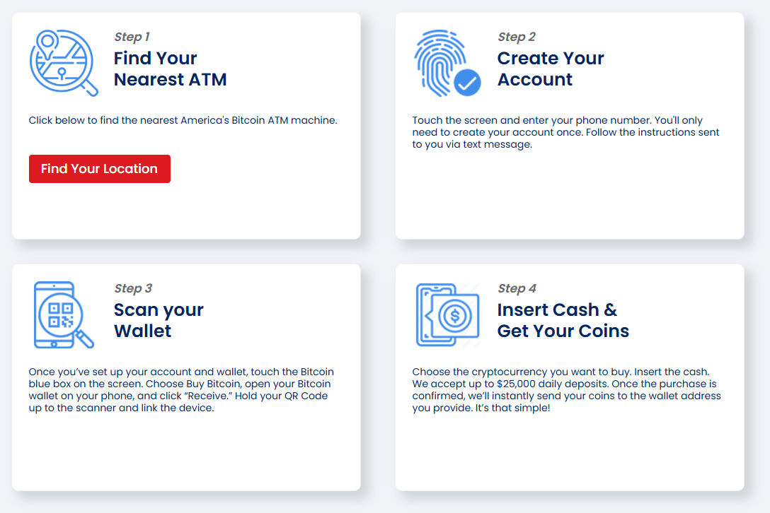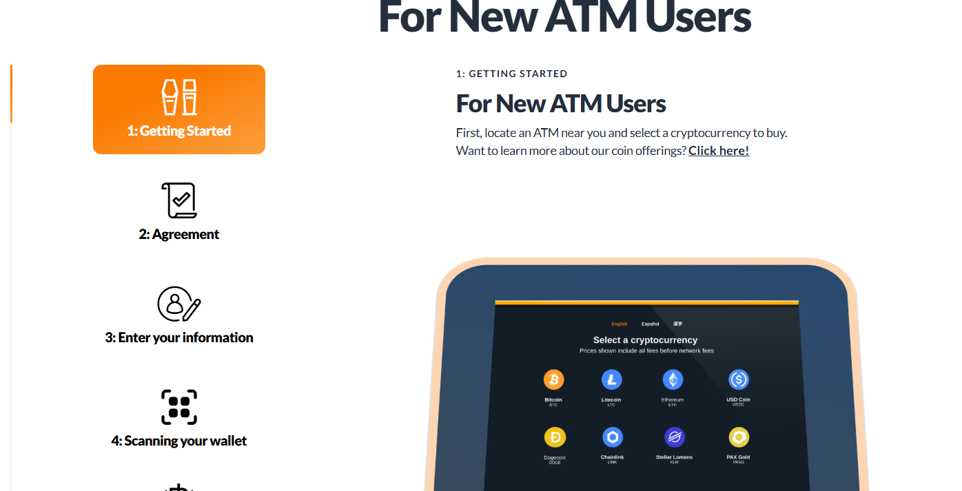 ATM instructions. May want to include “What do I need?” Smartphone, Crypto wallet, Cash.