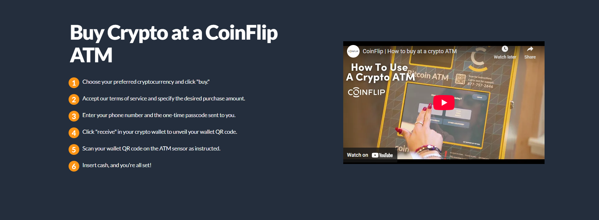 ATM instructions. May want to include “What do I need?” Smartphone, Crypto wallet, Cash.